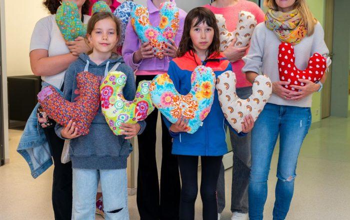 Schülerinnen nähen für Brustkrebspatientinnen des EVK Bergisch Gladbach